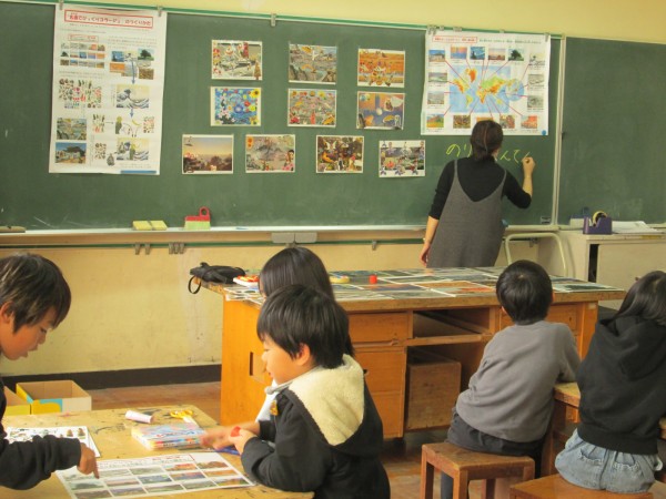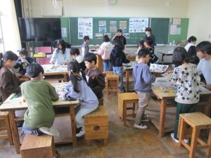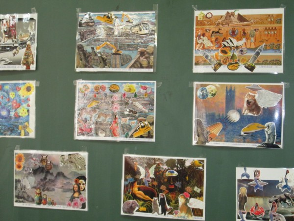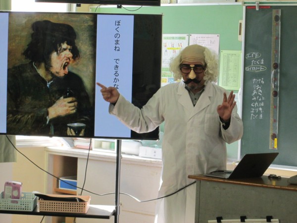 本日、2~5校時にかけて、県立美術館の学芸員さんによります出前授業が3年生を対象に行われました。教室では、子ども達の気を引くような出で立ちで、有名な絵画の作品を楽しく紹介し、図工室では、「名画でびっくりコラージュ」とう題名で実際にコラージュ作品を作る指導をしてくださいました。子どもたちは、興味津々で話に聞き入り、作品作りに目を輝かせていました。貴重な経験になったことでしょう。