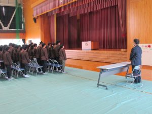 本日1校時に神照小学校同窓会入会式がありました。来週に卒業式を控えている6年生の皆さんに、同窓会長の大谷浩彦氏からお話と記念品の授与をしていただきました。徐々に卒業への雰囲気が高まりつつあります。