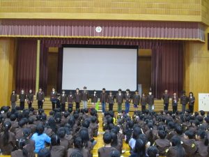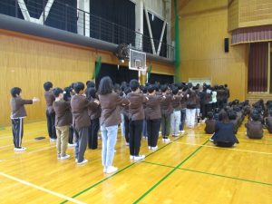 6年生から体育館に入場しましたが、入場後も大変静かに待つことができました。6年生の姿がすばらしいので、1年生から5年生もその雰囲気を感じ、静かに入場し会が始まるのを待つことができました。