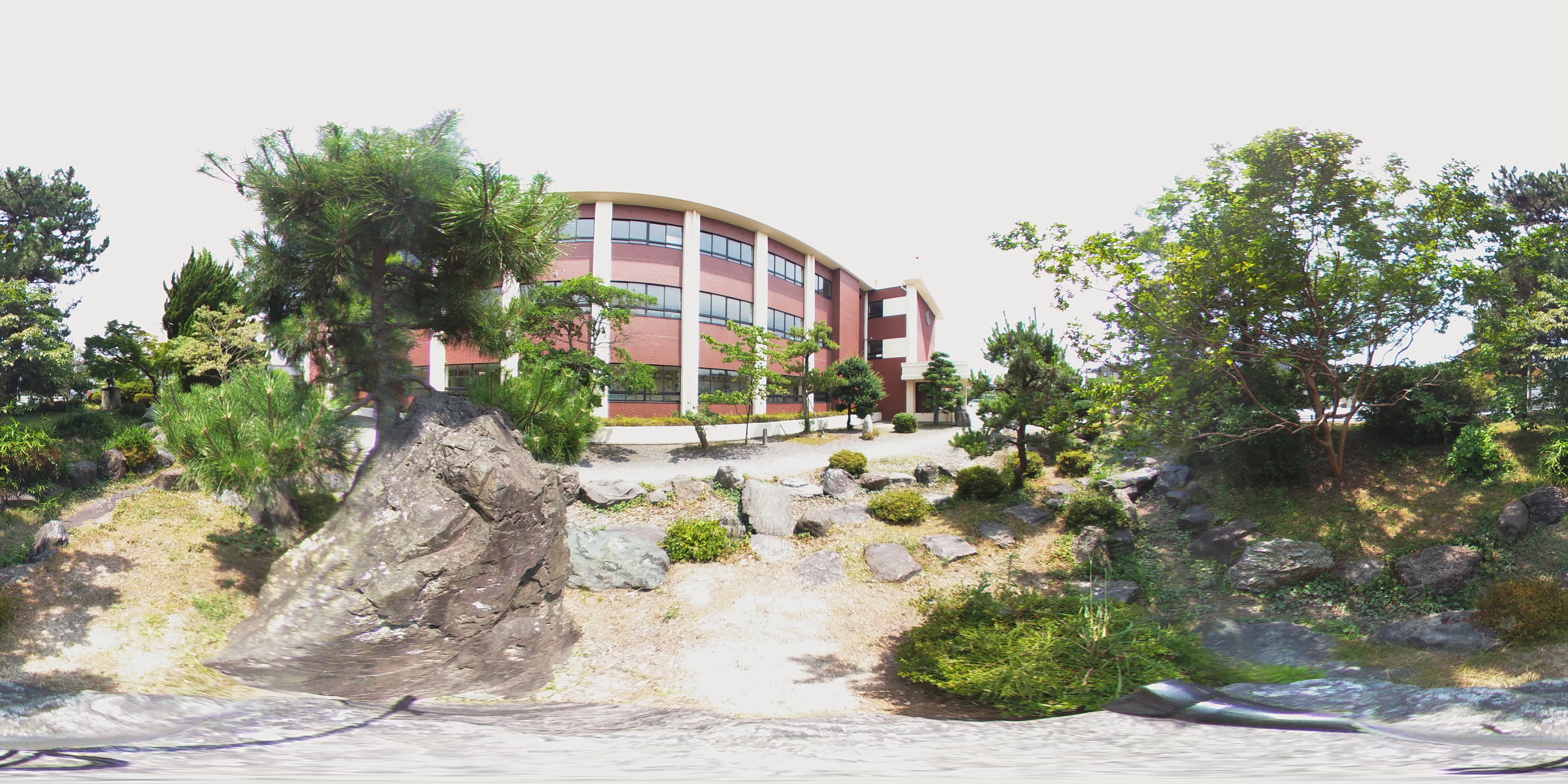 南校舎・北校舎そして中校舎に囲まれた中庭は「仲良し広場」と呼ばれ、休み時間になると、にぎやかな声がこだまします。中央には大きな池があり、こいがゆったりと泳いでいたり、時には亀が水面に浮いてきたりしています。